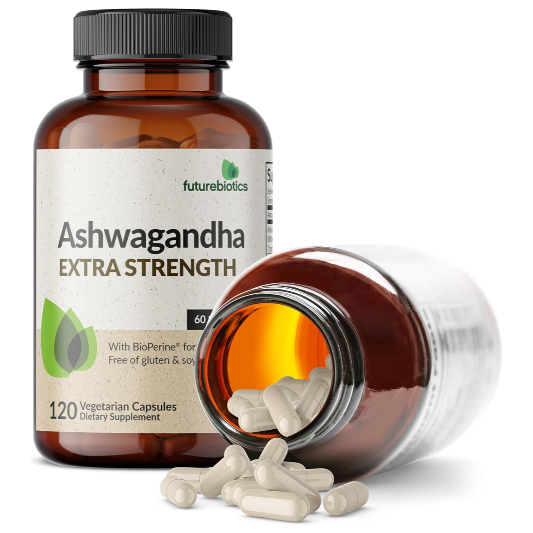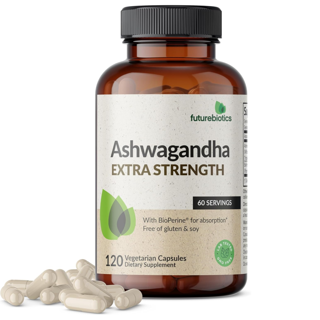 Futurebiotics Ashwagandha Extra Strength Stress & Mood Support with BioPerine - Non GMO Formula, 120 Vegetarian Capsules