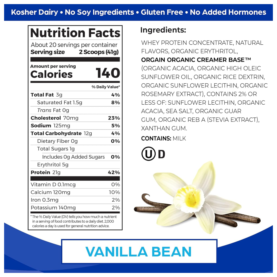 Orgain Grass Fed Whey Protein Powder, Vanilla Bean - 21g of Protein