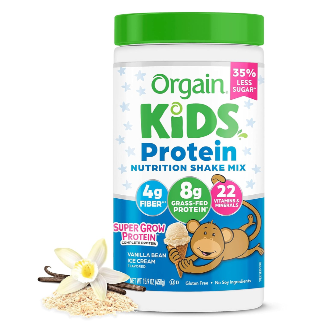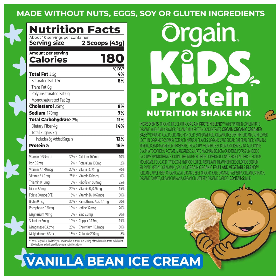 Orgain Kids Protein Powder Shake Mix, Vanilla Bean Ice Cream - 8g Dairy Protein, 22 Vitamins & Minerals, Fruit & Vegetable Blend, Gluten Free, No Soy Ingredients, Add Nutrients to Kids Snacks - 1lb