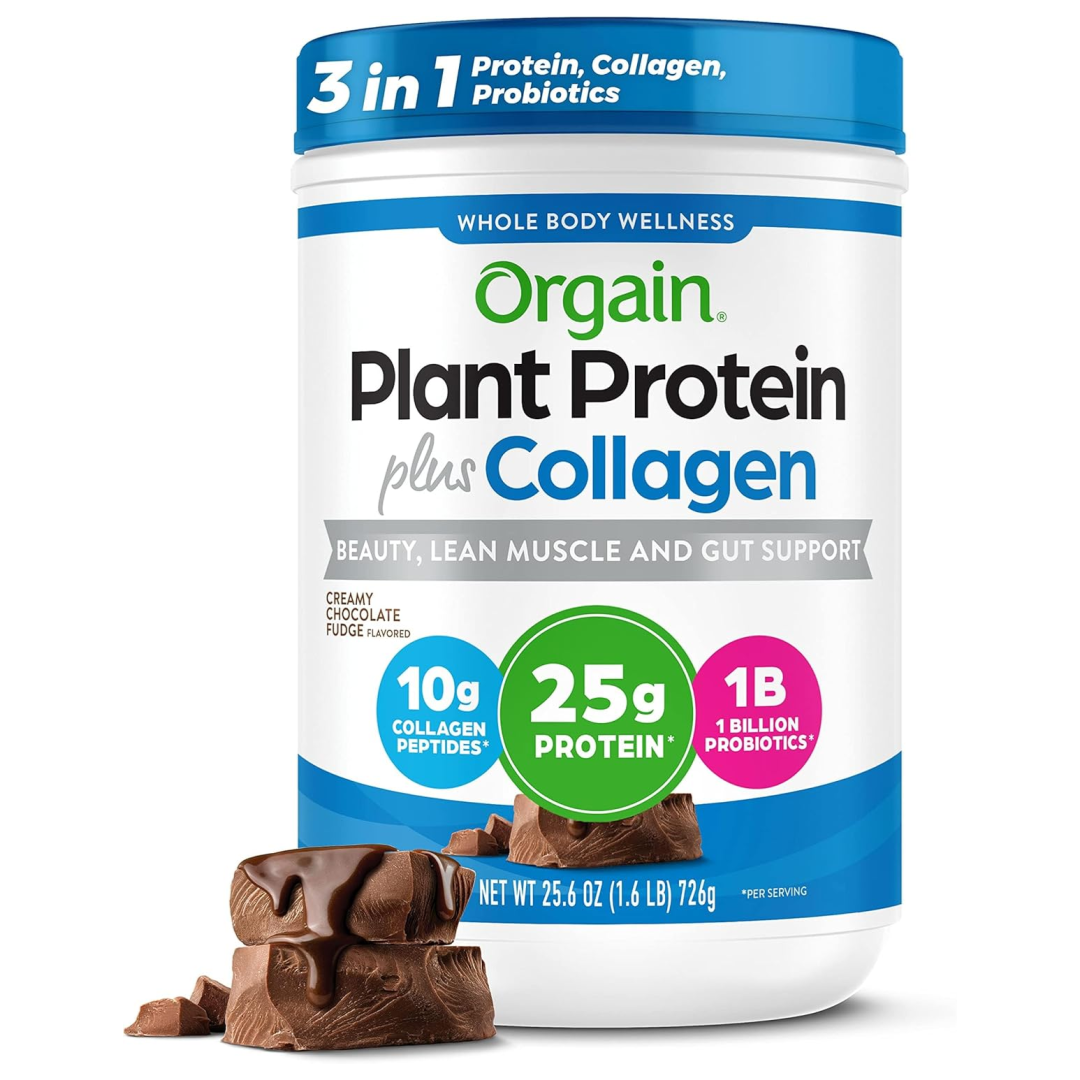 Orgain Plant Protein plus Collagen is the 3-in-1 solution that will maximize your daily nutrition with every sip. Each serving offers 15g organic plant protein, 10g grass-fed collagen, plus the gut goodness of one billion probiotics. With 0g sugar and made without gluten, dairy, soy, or GMOs, this delicious blend is the clean fuel you’ll want to start your day.