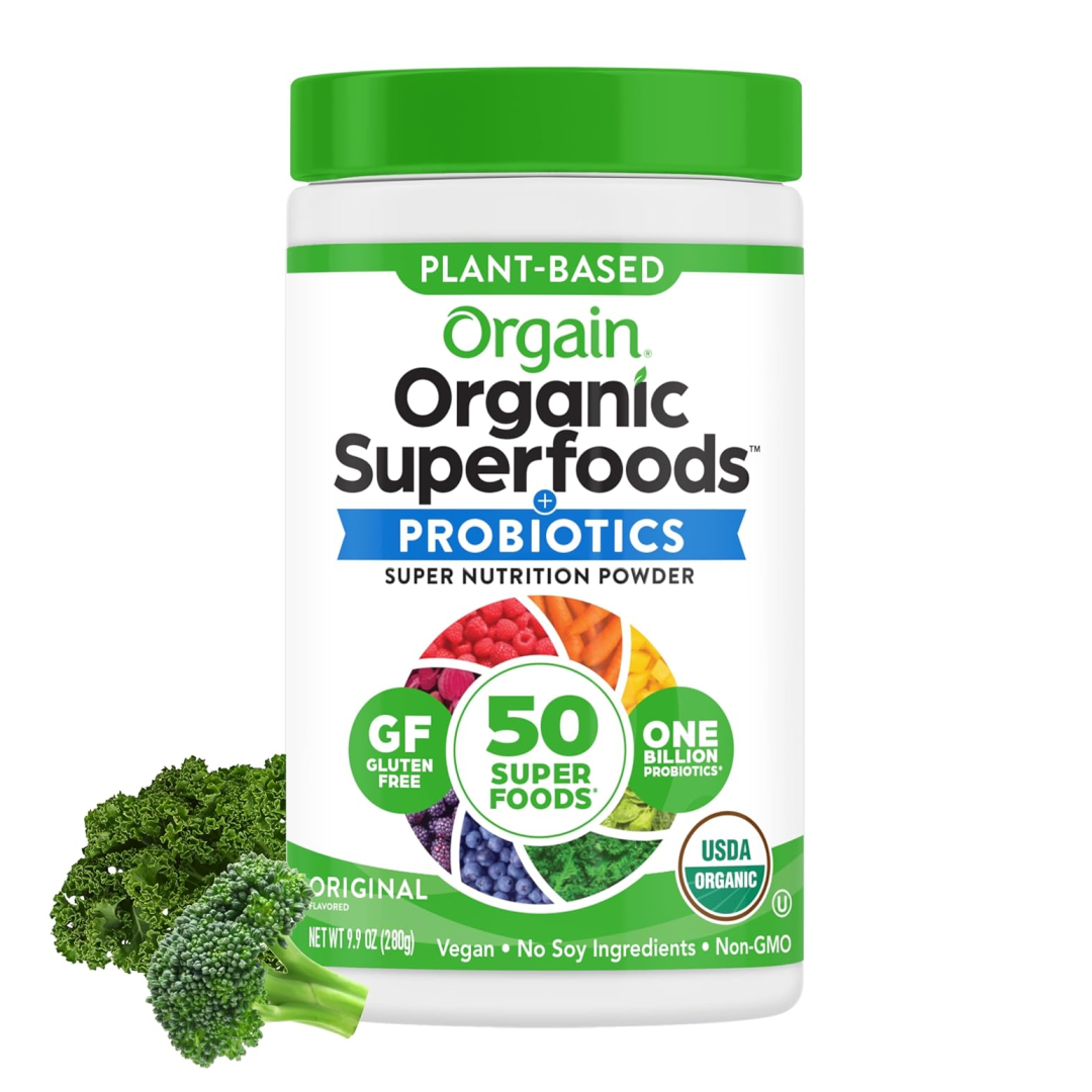 Orgain Organic Green Superfoods Powder, Original - Antioxidants, 1 Billion Probiotics, Vegan, Dairy Free, Gluten Free, Kosher, Non-GMO