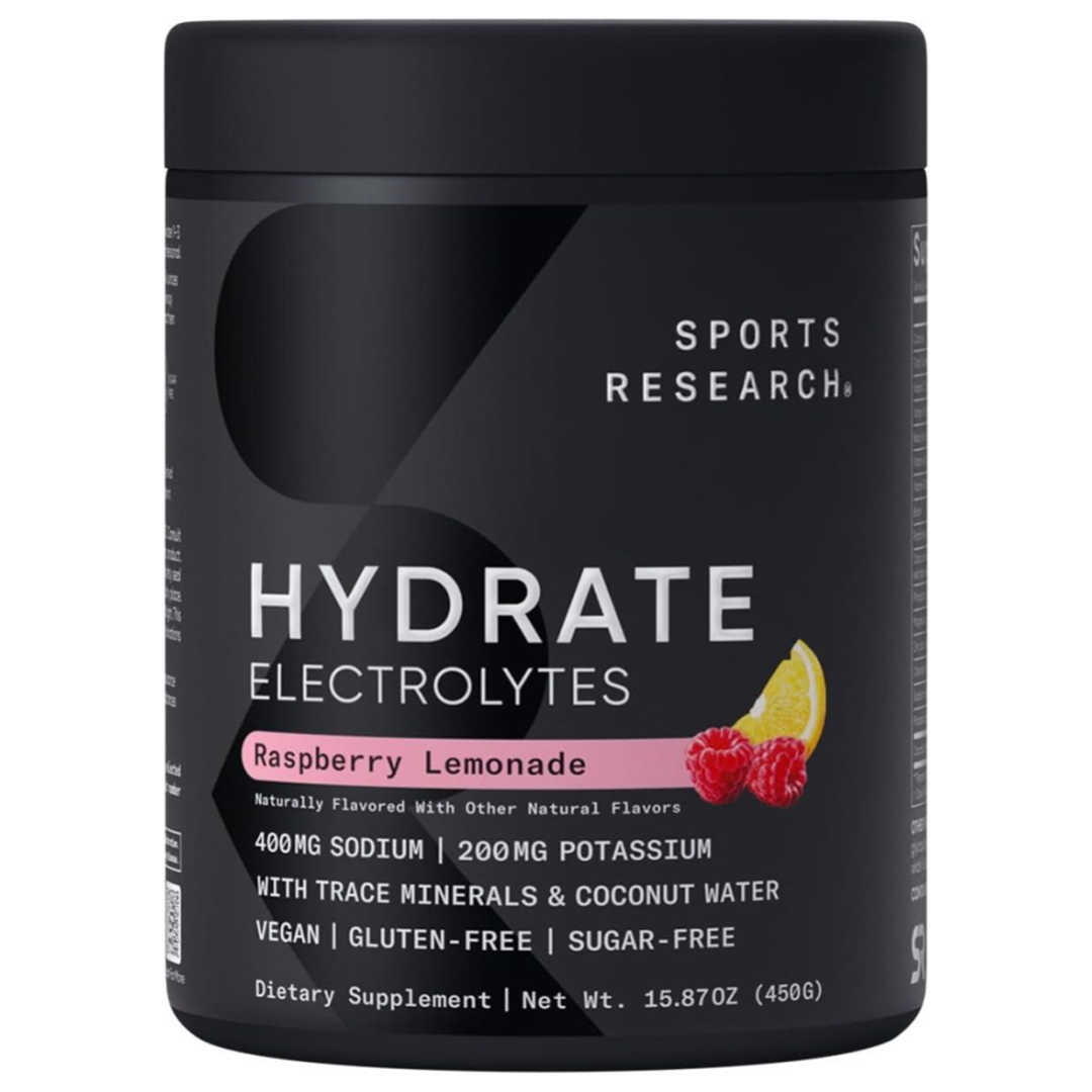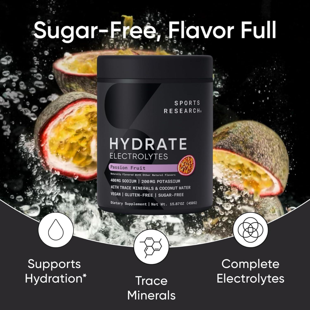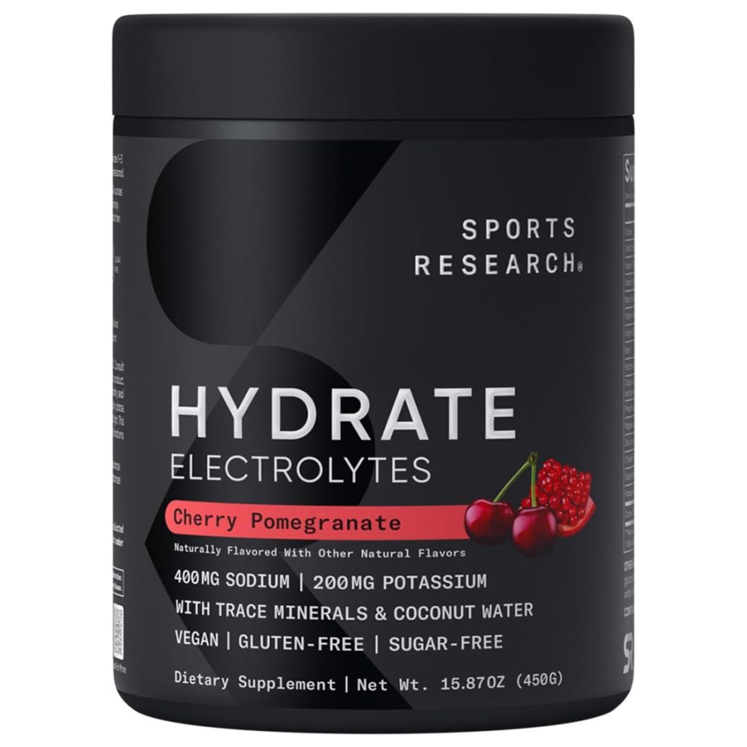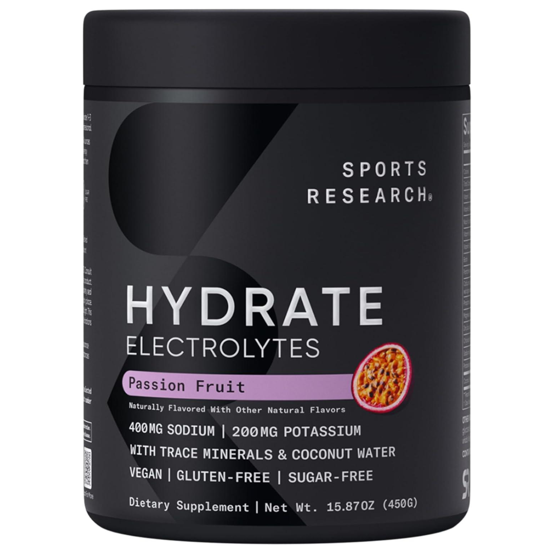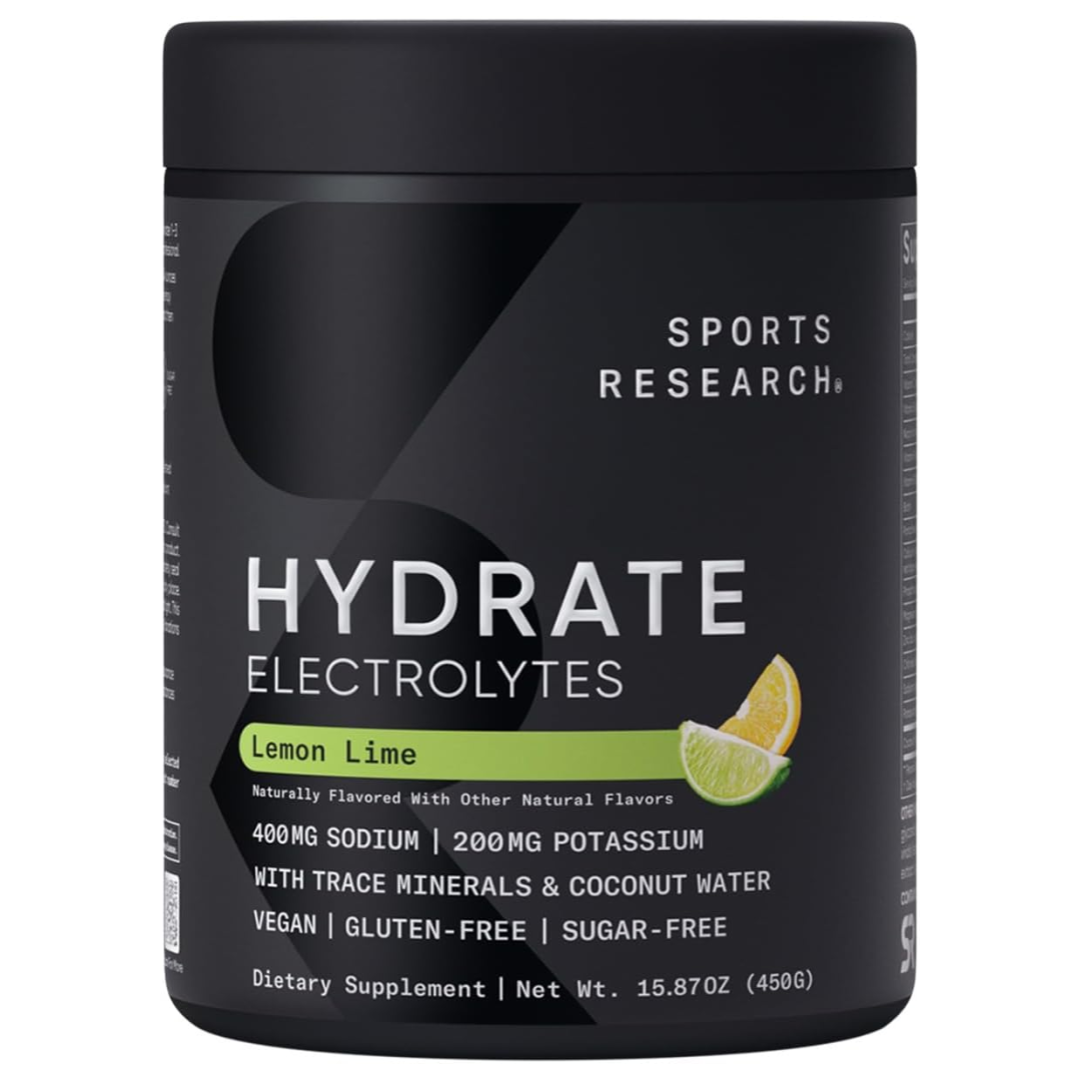 Sports Research® Hydrate Electrolytes Powder - Sugar-Free & Naturally Flavored with Vitamins, Minerals, and Coconut Water - Supports Hydration (90 Servings)